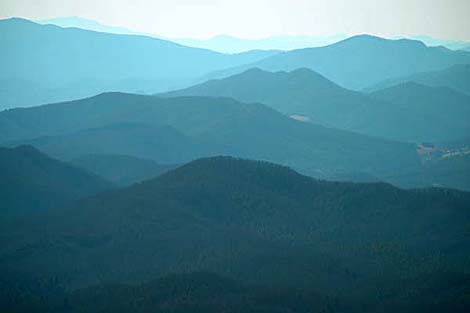 towards the Great Smoky Mountains in the far distance.